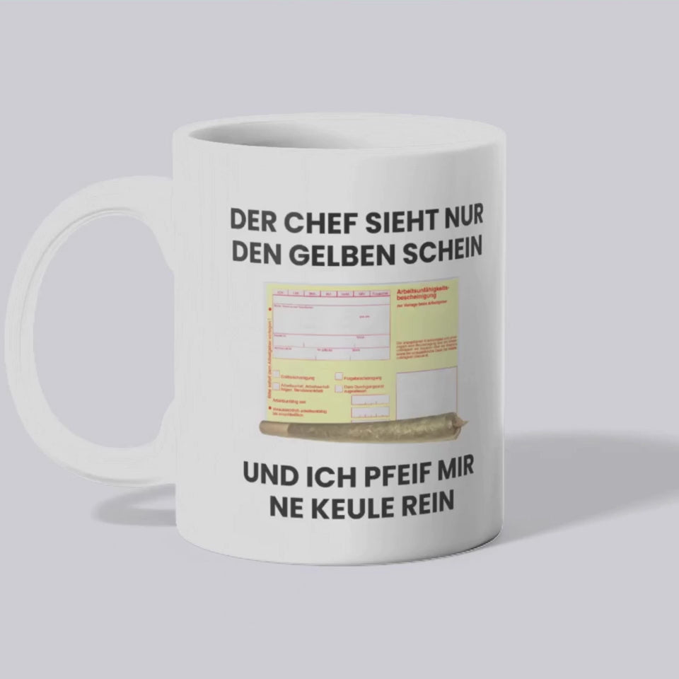Gelben Schein Ich pfeif mir ne Keule rein Tasse